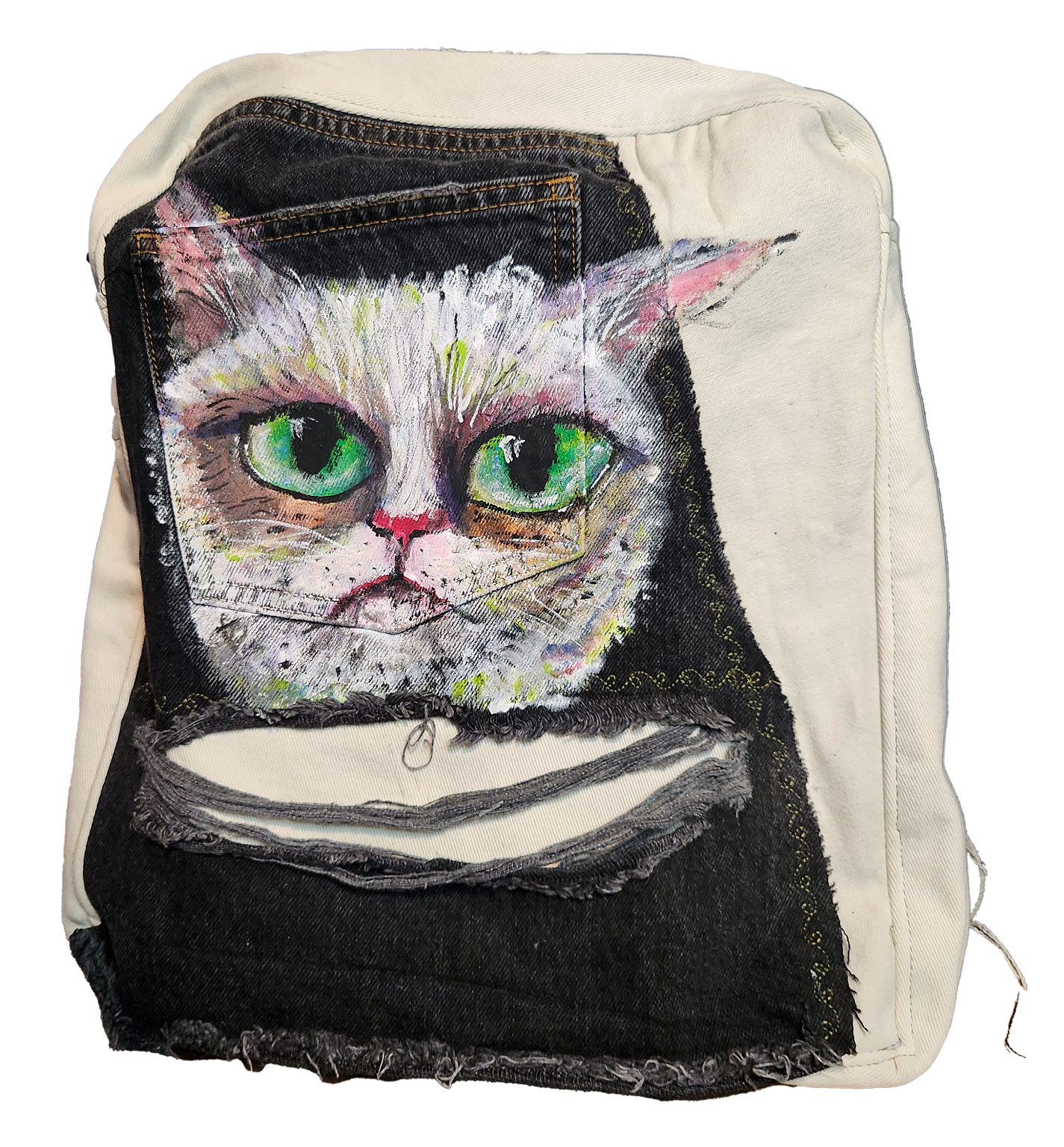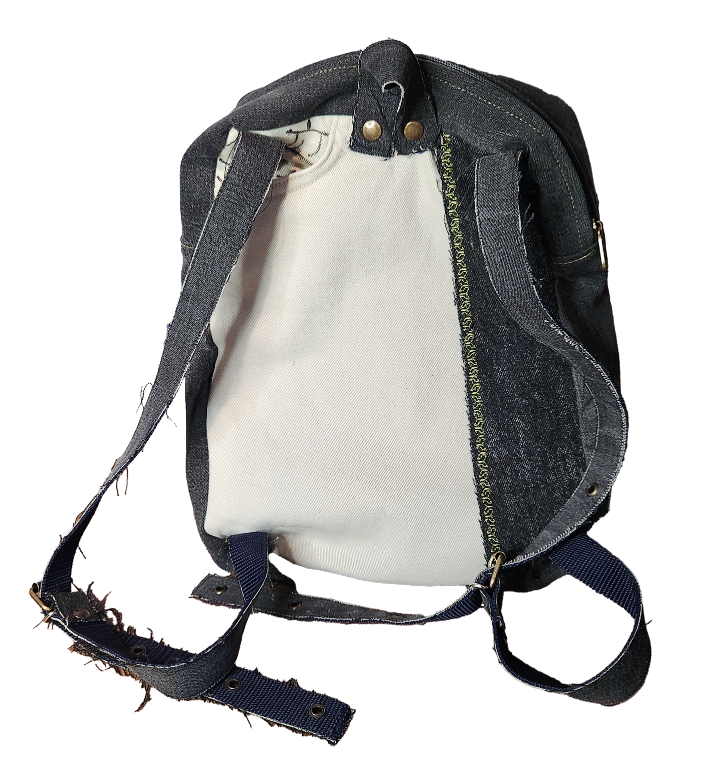 Das Material für meine Taschen besteht aus recyceltem Material, nämlich Jeans.