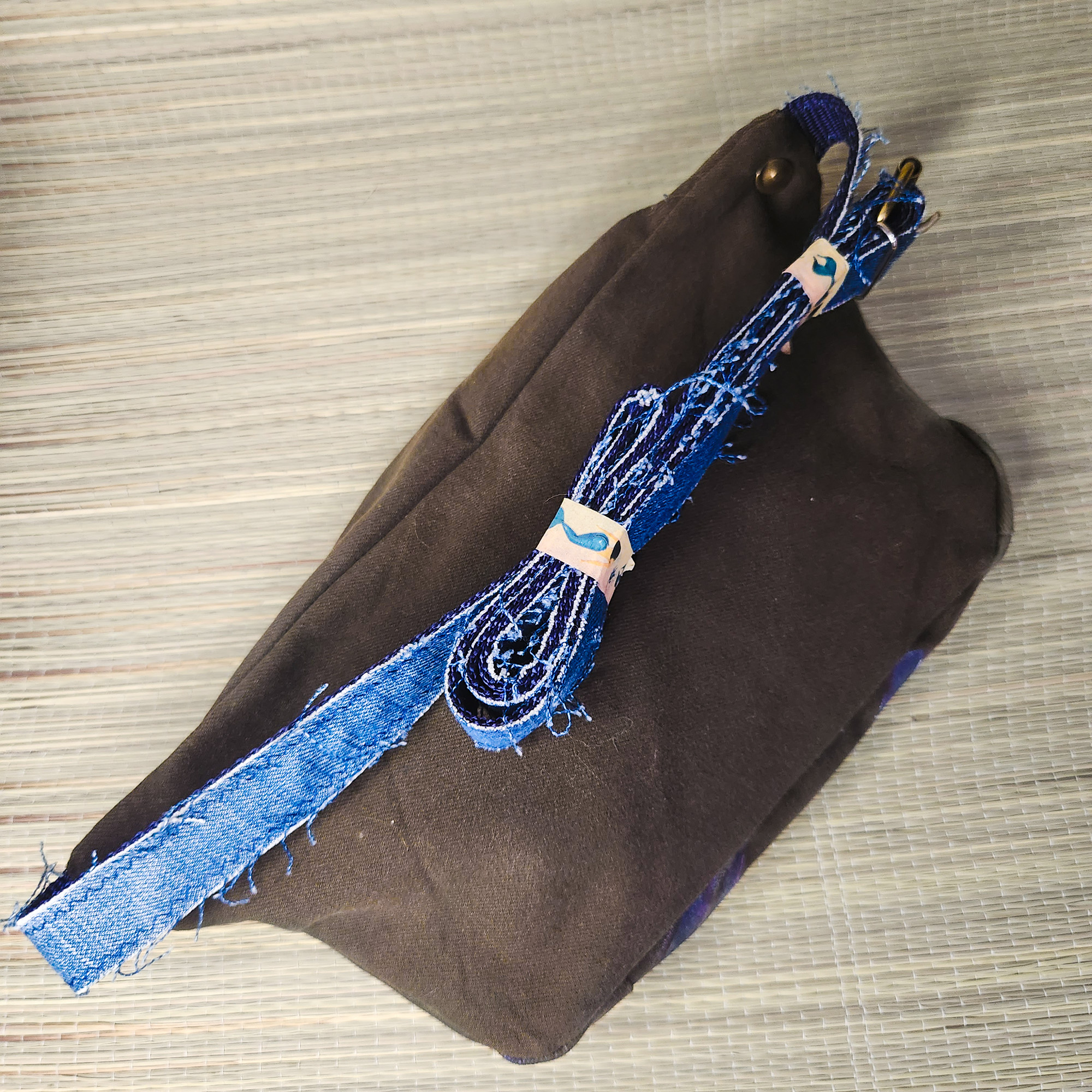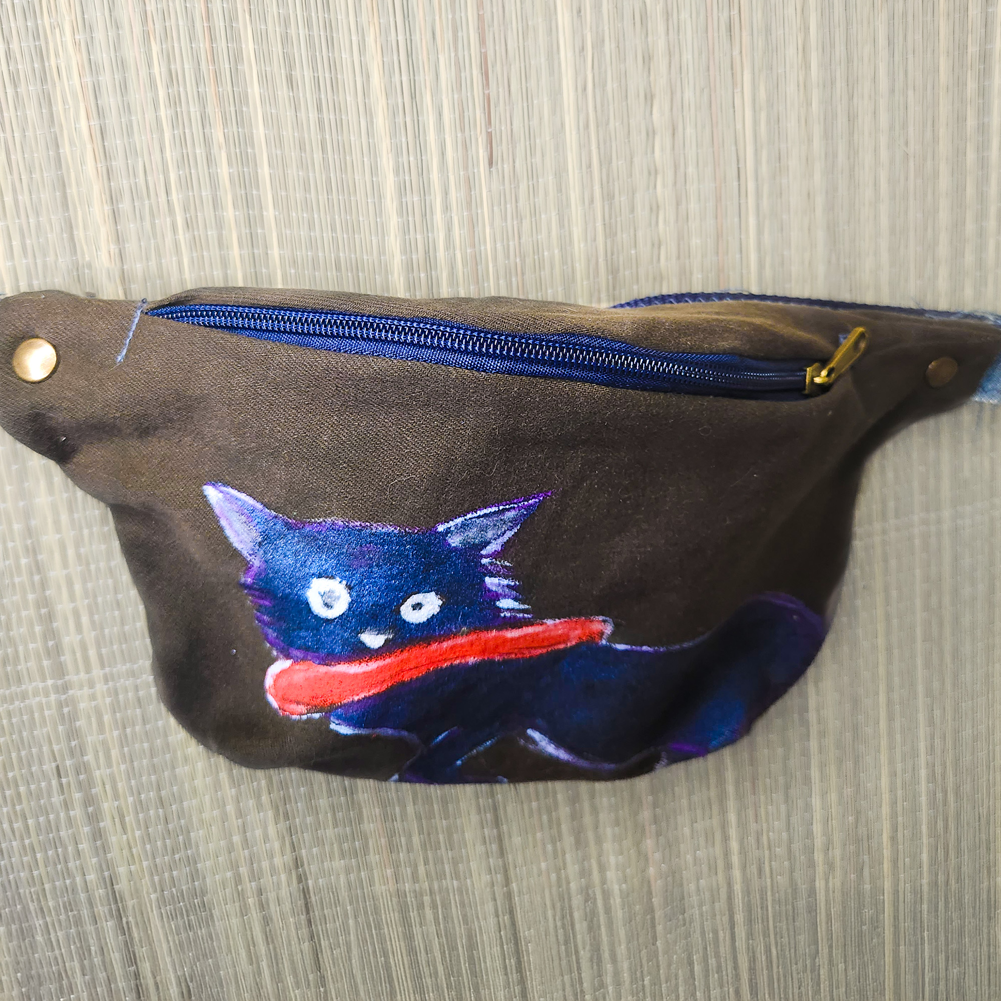 Exklusive Bauchtasche aus recyceltem Denim – vereint Stil und Umweltbewusstsein in einem Produkt. Jedes Stück ist ein Unikat: Das Motiv wird von Hand gemalt und existiert nur ein einziges Mal.