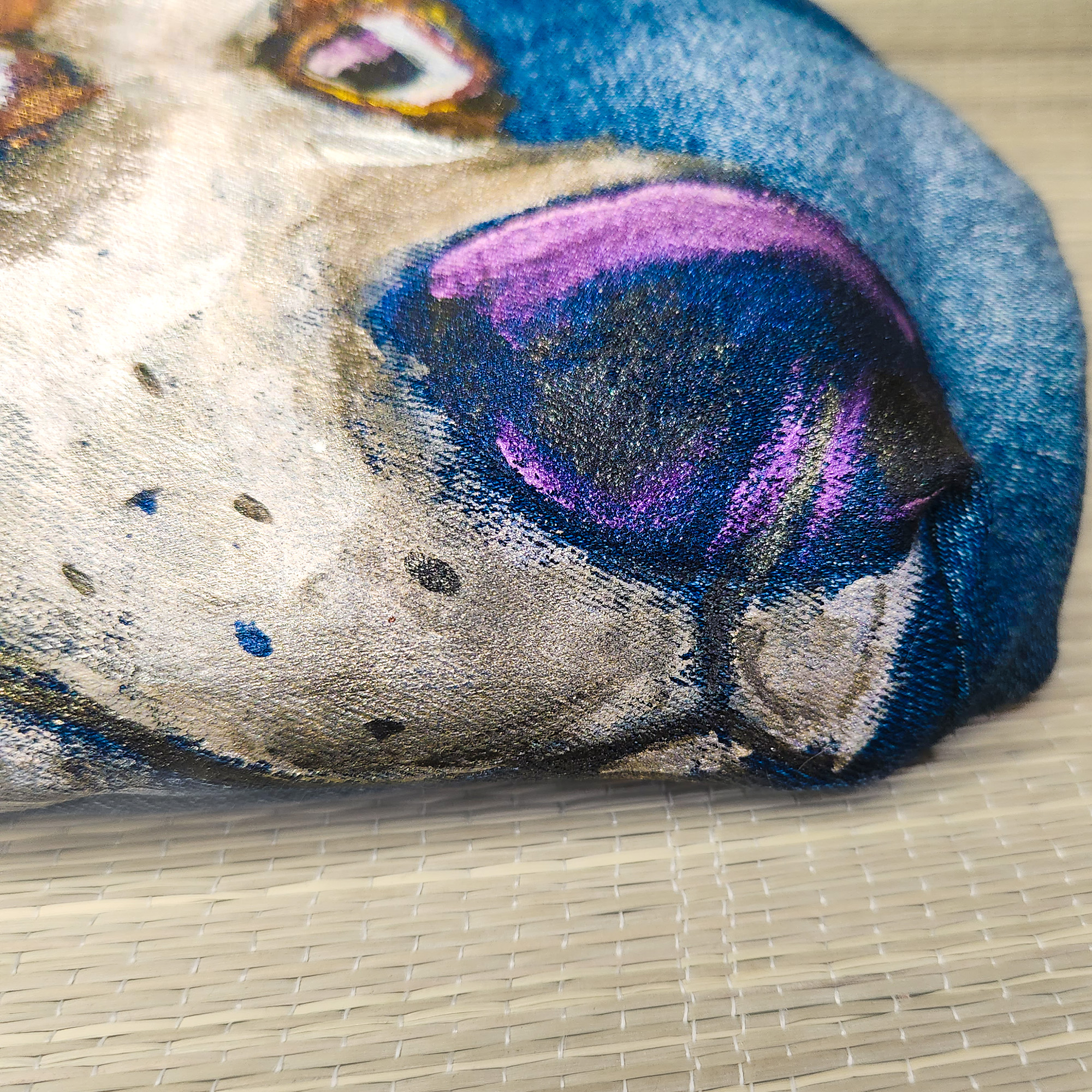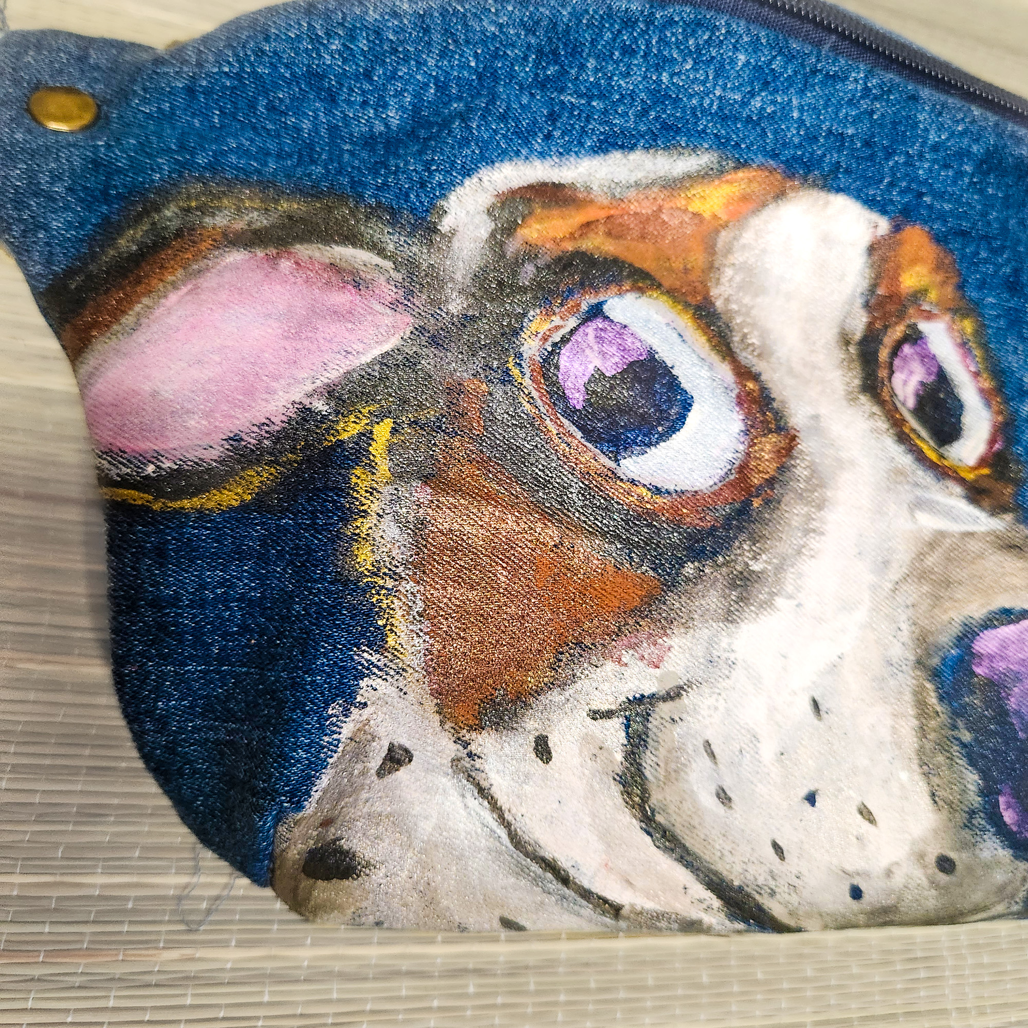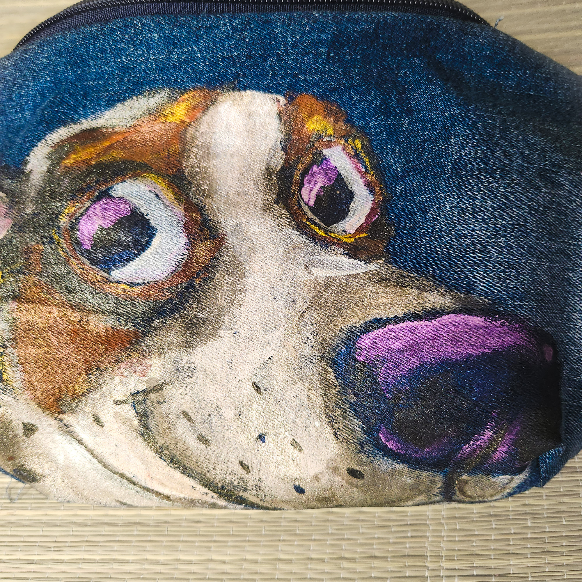 Exklusive Bauchtasche aus recyceltem Denim – vereint Stil und Umweltbewusstsein in einem Produkt. Jedes Stück ist ein Unikat: Das Motiv wird von Hand gemalt und existiert nur ein einziges Mal.