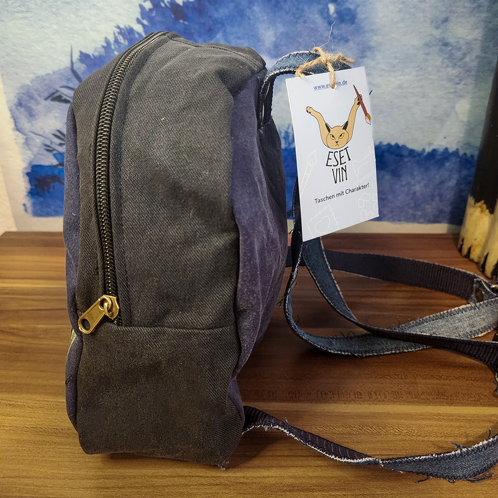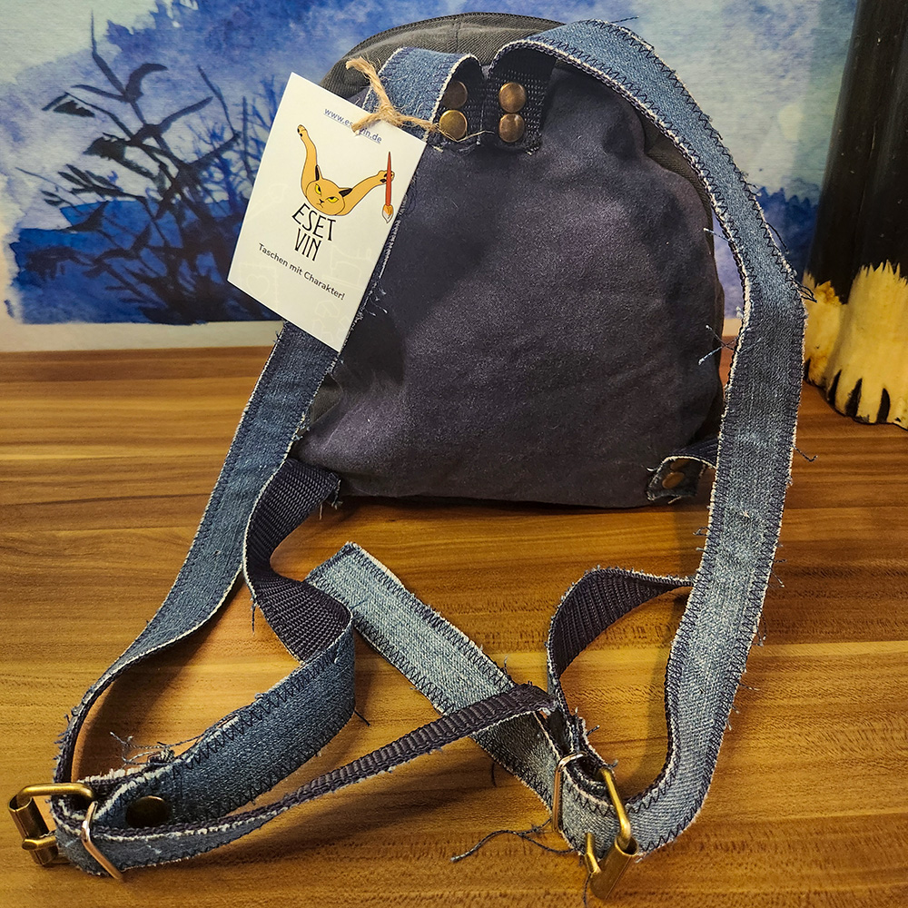 Rucksack aus recyceltem Jeansstoff | Handgefertigtes Unikat | Rucksack mit Motiv