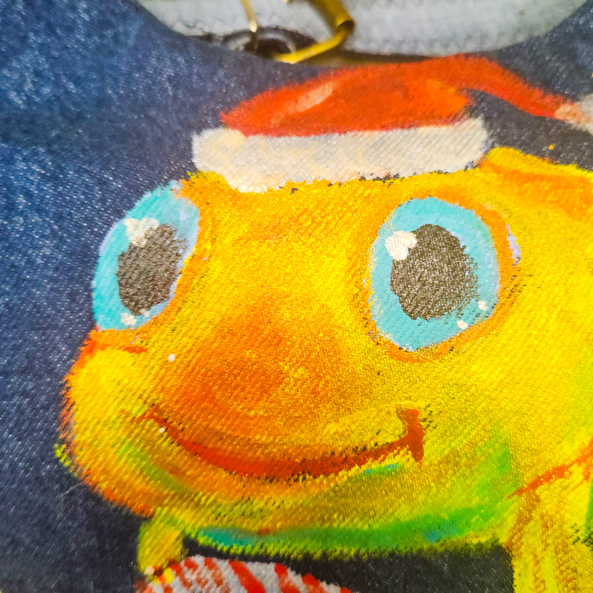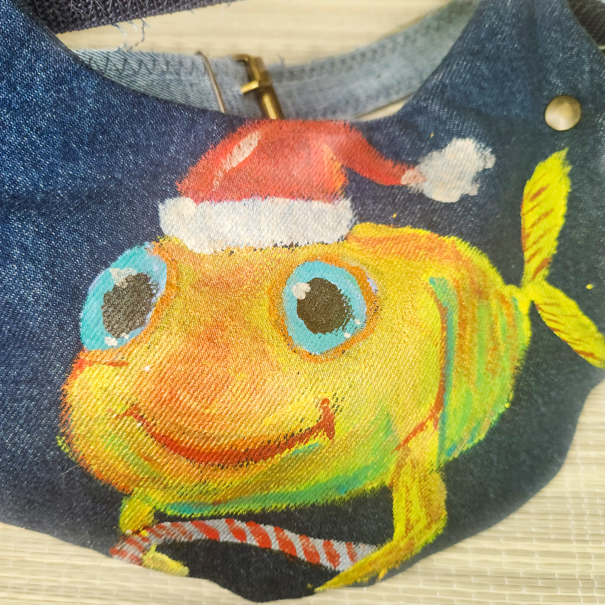 Eine exklusive Tasche in Form einer niedlichen Katze aus recyceltem Jeansstoff – vereint Stil und Umweltbewusstsein in einem einzigartigen Accessoire. Jedes Stück ist ein Unikat: Das Motiv wird von Hand gemalt und existiert nur ein einziges Mal.