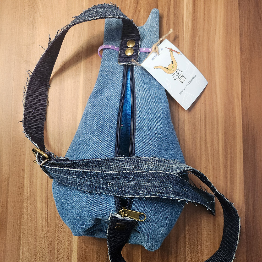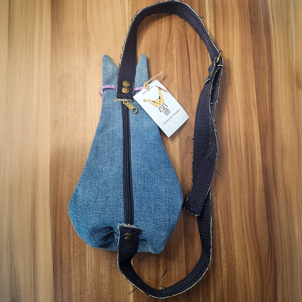 Tasche in Katzenform aus recyceltem Jeansstoff | Handgefertigtes Unikat | Kleine Tasche mit Motiv